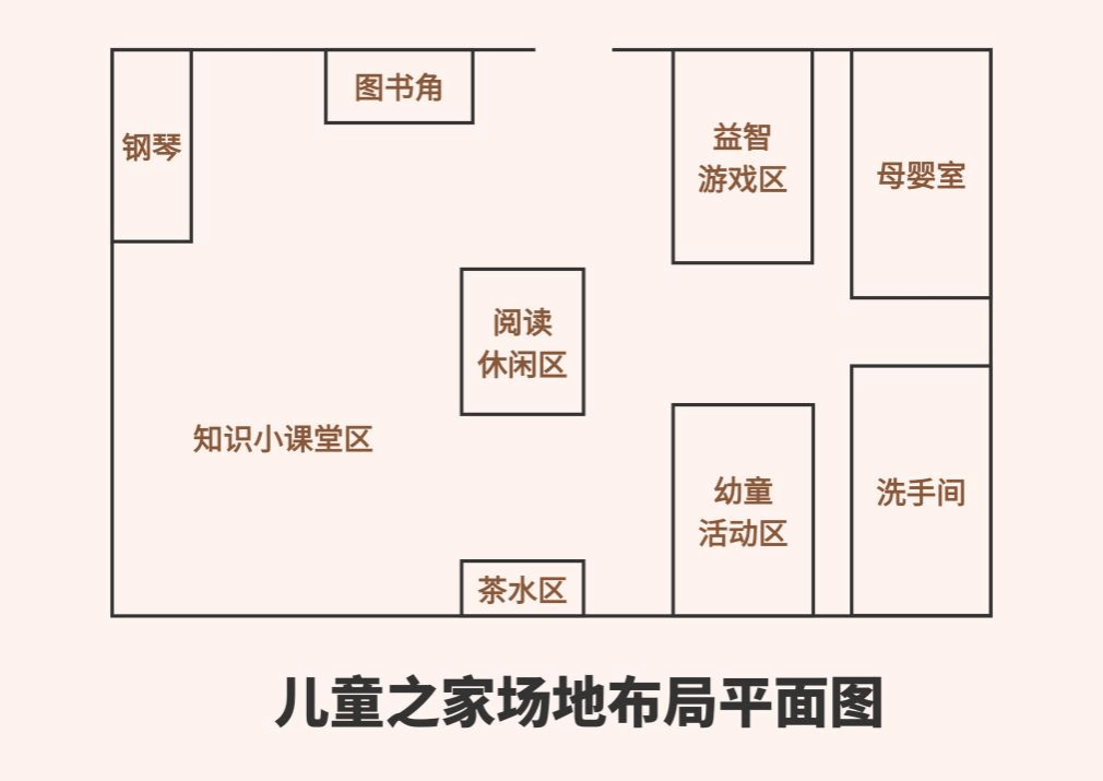内置母婴室、幼童活动区、益智积木区、阅读角、知识小课堂等区域。