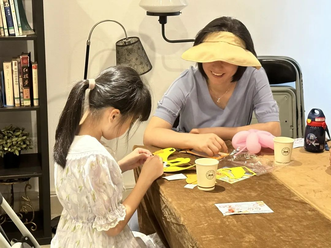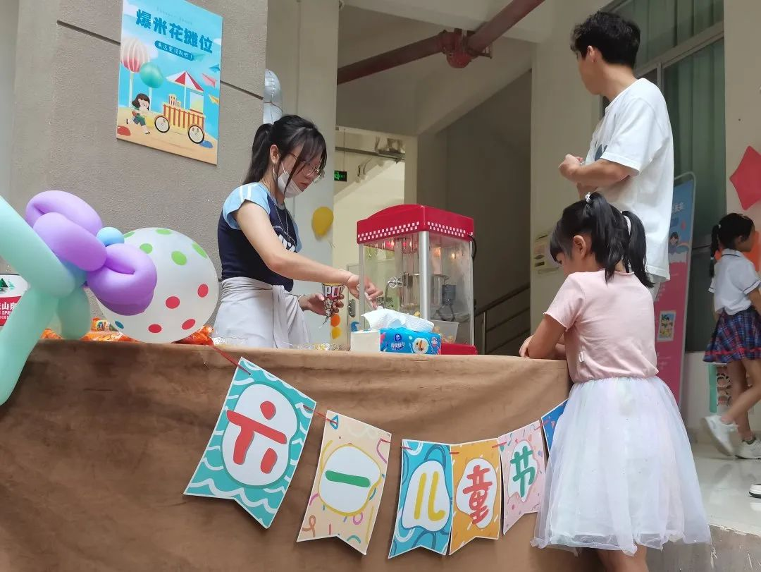 游园活动设置了皮筋夹纸杯、天黑请闭眼、金字塔、亲子抛接、套圈圈等多个游戏摊位,还有小手工制作区、爆米花派发区和快闪小剧场等,每个摊位都趣味盎然。